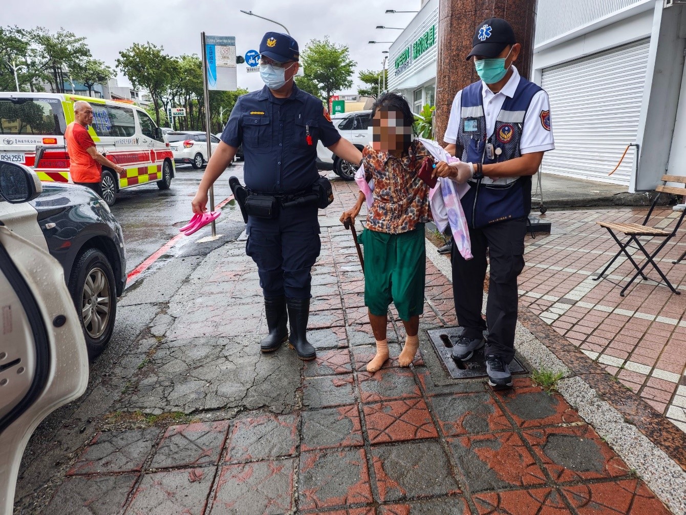 本局左營分局文自派出所員警接獲110系統通報稱有民眾於曾子路疑似迷路,請求警方協助。員警迅速趕往現場後,發現黃姓老婦坐在人行道上,身上衣物已被風雨打濕,顯得虛弱無力。經詢問後得知婦人原想外出買飯,未料颱風來襲風雨加劇,加上行動不便,不慎跌倒無法起身,警方立刻評估婦人身體狀況,確認無明顯外傷後,立刻協助其返家,婦人對警方的積極協助表示萬分感謝。